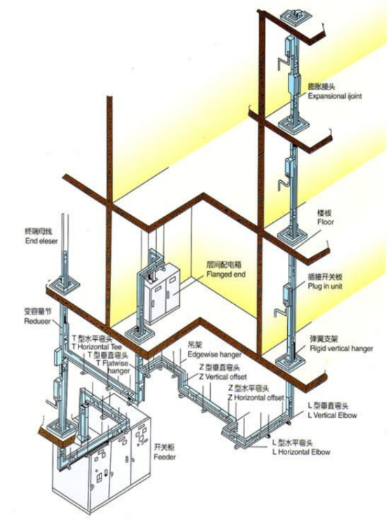 前端母線,為電源引入單元,可直接與變壓器或低壓配電屏聯(lián)接。變?nèi)萘抗?jié),為母線改換容量時(shí)的過(guò)渡節(jié)。