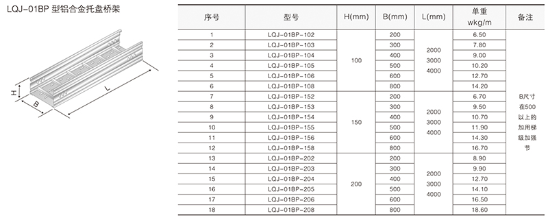 鋁合金電纜橋架在某種結(jié)構(gòu)形式中無其它結(jié)構(gòu)形式中的某-種產(chǎn)品類別,選型可作代用表示。例如:在LQU-CC型槽式鋁合金電纜橋架結(jié)構(gòu)形式中,無鋁合金配線橋架中的LPC-03D, 即表示為LFC-CC-03D。