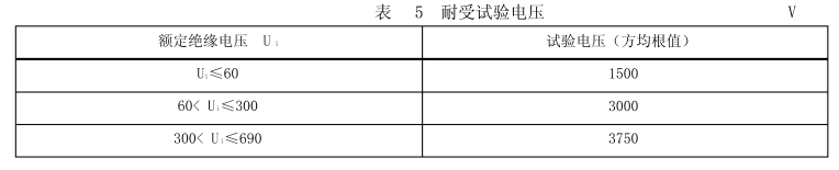 在按5.8進(jìn)行試驗時,母線槽及其饋電箱應(yīng)能耐受表5規(guī)定的工頻電壓,歷時1min無擊穿和閃絡(luò)。
