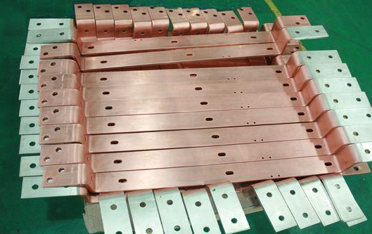 如圖是已經(jīng)噴涂完成正在機床上等待最后組裝加工的母線槽的母線銅排。