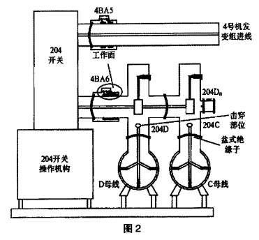 12月6日對電流互感器4BA6 B相進行檢查處理,票中的安全措施有斷開204開關(guān),拉開204C刀閘、204D刀閘,合204DO地刀等。12月7日,檢修持票將該間隔4BA6B相氣窒內(nèi)SF6氣體抽至零表壓后(該氣室內(nèi)還有1個大氣壓的SF6氣體)。打開B相氣室端蓋,對斷線進行處理后回裝好端蓋,在對氣室抽真空時,報“220kV o母線槽復(fù)合電壓動作",“220kVD母線槽保護動作”,連接于D母線槽上的所有電氣元件全部跳閘,D母線槽失壓。