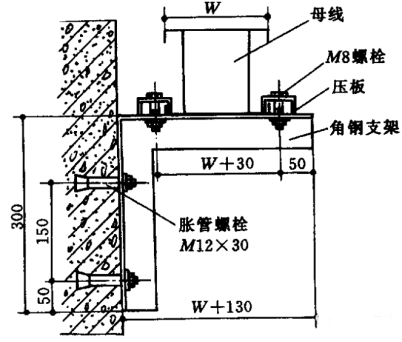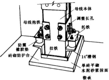 4.5封閉式母線槽筆直安裝。沿墻或柱子處,應(yīng)做固定支架,過樓板處應(yīng)加裝防震安裝,并做防水臺(圖7)。
