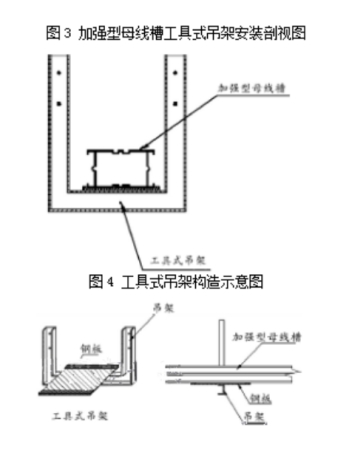 (2)選用的吊架可重復(fù)使用的附加有鋼板的吊架起備固定母線槽,加寬了吊架與母線槽的觸摸面積,可增加吊架的設(shè)備間隔,減少母線槽接頭數(shù)量,減少資料的用量。