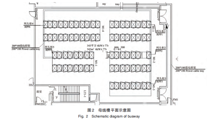 6.銜接盒接線盒能夠在母線槽主體上裝置,接線盒內(nèi)置操控空開及給機(jī)柜供電的插座。現(xiàn)在職業(yè)上,接線盒在母線槽主體上裝置,大多數(shù)均支持熱插拔方法,靈敏卡位固定,方便隨時(shí)為擴(kuò)容負(fù)載供給電氣銜接。接線盒在母線槽主體上詳細(xì)裝置方位職業(yè)上基本由兩種設(shè)計(jì)狀況,固定裝置和靈敏裝置,Sch?neider 等供應(yīng)商選用固定式方位裝置,即母線槽主體上每隔 600 mm 預(yù)留一個(gè)裝置孔位供給接線盒裝置。PDI、Startline等供應(yīng)商可在主體上任何方位裝置。對不同尺度規(guī)格機(jī)柜擺放而言,無疑后者愈加合適機(jī)房的設(shè)計(jì)。 2. 7.監(jiān)控模塊監(jiān)控模塊分為結(jié)尾及主控單元兩部分。結(jié)尾單元為機(jī)房母線槽通過在端部饋電模塊、接線盒等部件裝備智能化電量儀等電氣收集模塊,可即時(shí)收集功率、電流、電壓等電氣數(shù)據(jù)。主控單元包含硬件主控單元和軟件辦理平臺(tái)。機(jī)房母線槽設(shè)計(jì)本文以某約 300 平米的電力機(jī)房為例,進(jìn)行母線槽計(jì)劃和傳統(tǒng)列頭柜計(jì)劃設(shè)計(jì)比較。該區(qū)域可安置 9列機(jī)柜,每個(gè)列頭柜對就近兩列機(jī)柜供電,每個(gè)機(jī)柜尺度為800 mm×1 100 mm。如圖2所示。
